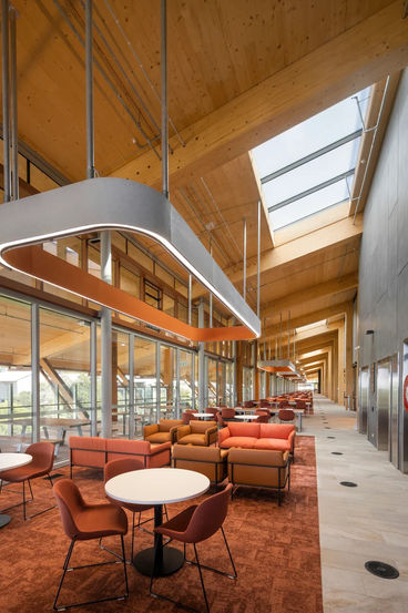 Constructed with both locally and internationally sourced timber, it showcases the region's sustainable resources whilst also creating an inclusive and forward-looking environment within the campus. Not only has the amount of timber used already been regrown, but the use of this material also pays respect to the indigenous people who have used natural renewable products such as timber to build shelters and homes for 60,000 years.