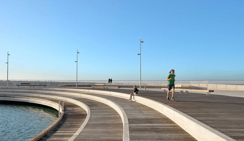 Public access to the bay with open spaces, tiered seating, and a wider, all-abilities walkway.